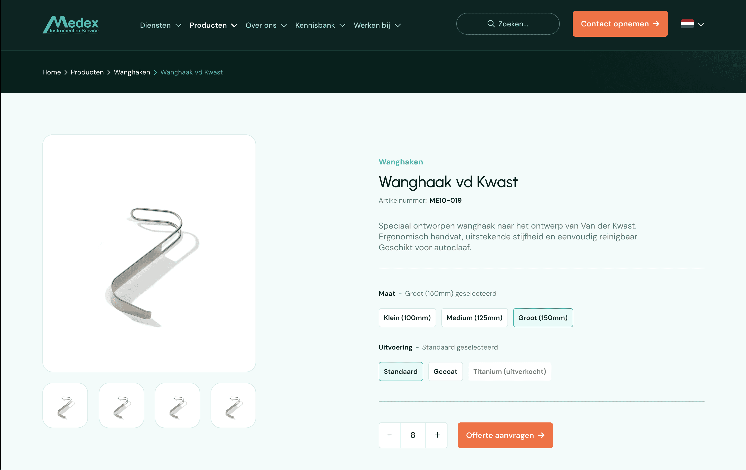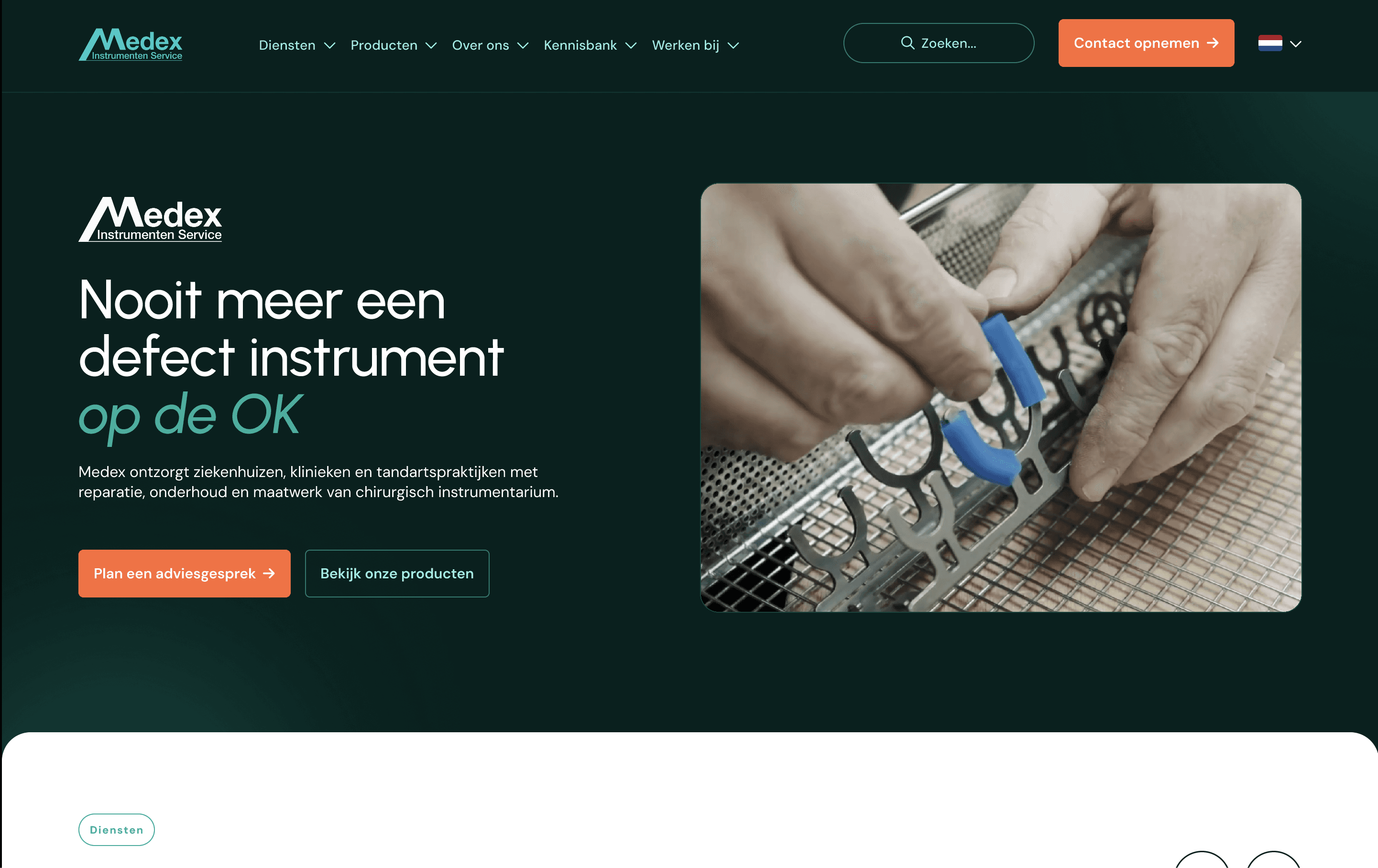 Medex Instrumenten Service is een ISO 13485-gecertificeerde specialist in reparatie, onderhoud en maatwerk van chirurgisch instrumentarium. De bestaande website was verouderd en miste een duidelijke conversiestructuur. De opdracht: een fris, professioneel ontwerp dat aansluit op de huidige huisstijl, maar meer impact en diepte uitstraalt. Voorafgaand aan het ontwerpen heb ik een nieuwe kleurstelling voorgesteld waarbij een herkenbare oranje CTA-kleur centraal staat. Het ontwerp kenmerkt zich door afgeronde hoeken, een strakke opbouw en een vriendelijke maar professionele uitstraling. As we speak wordt de site gebouwd. Zie hier de link naar de oude website: https://www.medex-instrumenten.com.